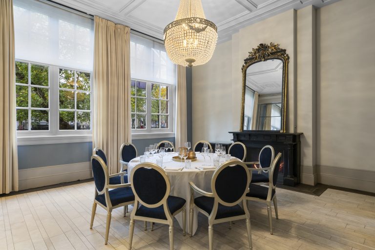 Deze salon in The College Hotel is geschikt voor presentaties, trainingen, seminars en workshops voor maximaal 90 personen in theateropstelling. Het is ook een perfecte ruimte voor een exclusieve lunch of diner voor maximaal 24 gasten aan een tafel, of 50 gasten aan vijf ronde tafels.